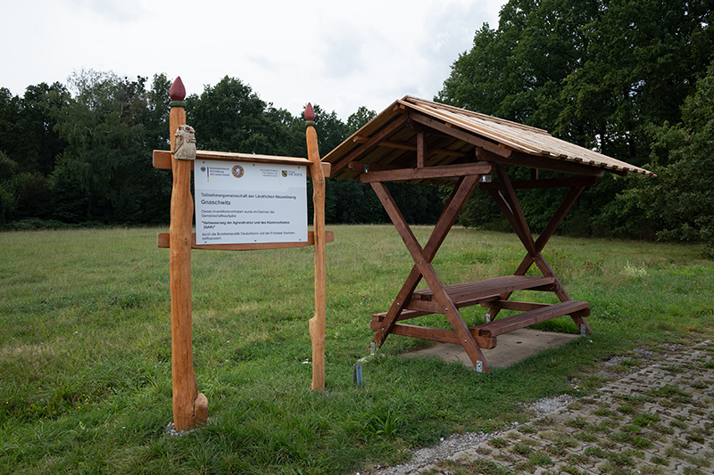 Von dem "Heimatverein Gaußig e.V. neu errichteter Rastplatz am "Weißen Stein" hinter Weißnaußlitz. Warum dieser Standort "Weißer Stein" genannt wird kann nicht abschließend erklärt werden.
