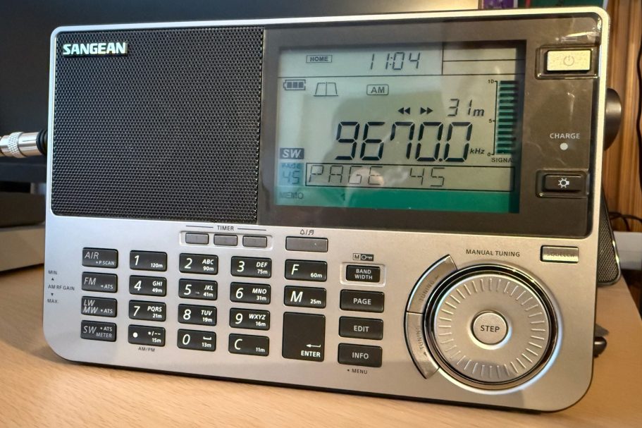 Ein konventioneller Weltempfänger, der Sangean ATS-909X2. Er bietet solide Empfangsresultate, ist sehr gut verarbeitet und für günstige 249 € (199 € in Weiß) zu bekommen.